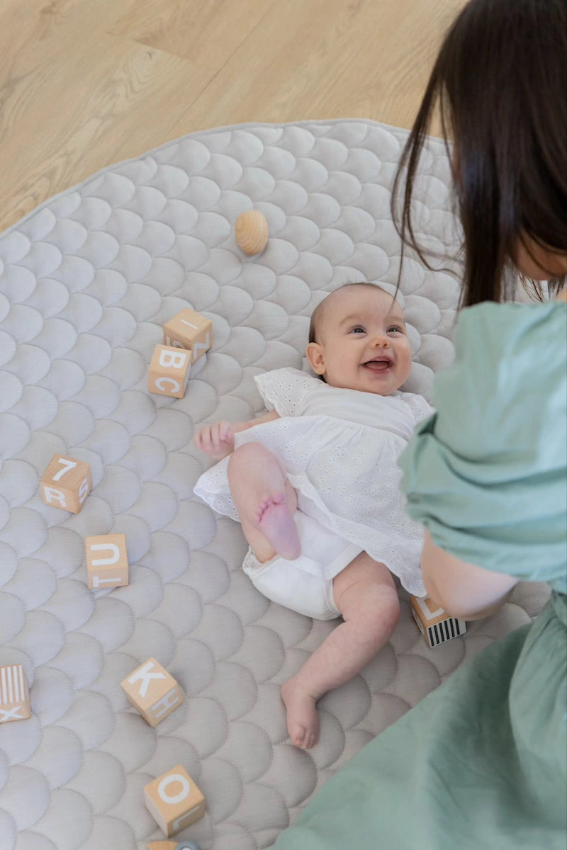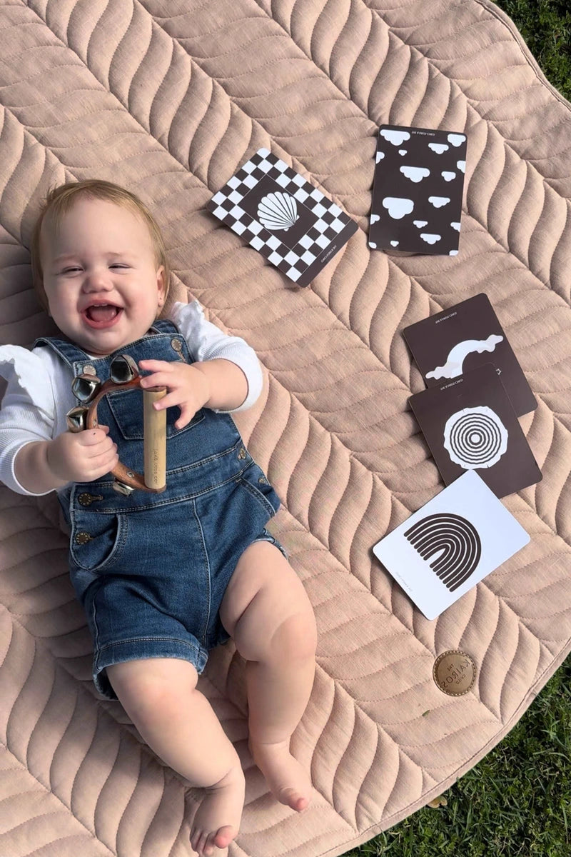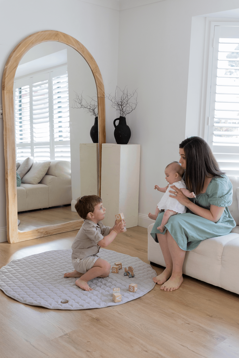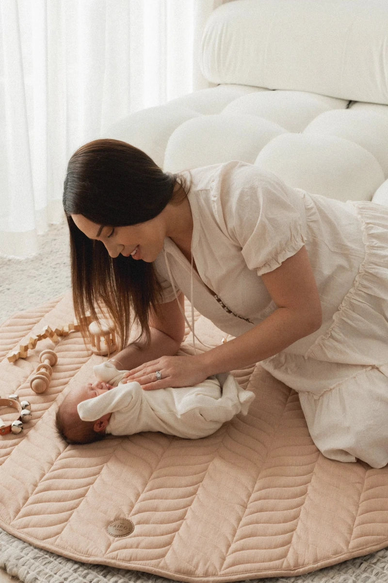 We're all about minimalism with our play mats. Although sensory stimulation is crucial for a baby's body and brain to comprehend itself and the environment, excessive sensory messages can quickly overwhelm the brain's ability to comprehend and respond, leading to sensory overload. Too many textures, primary colours, toys and more can cause overstimulation for a baby - and a mum too! We love the idea of a clean neutral play mat with less distraction, where you can choose to slowly start introducing new textures, interactive toys, mirrors or games when you feel the time is right!