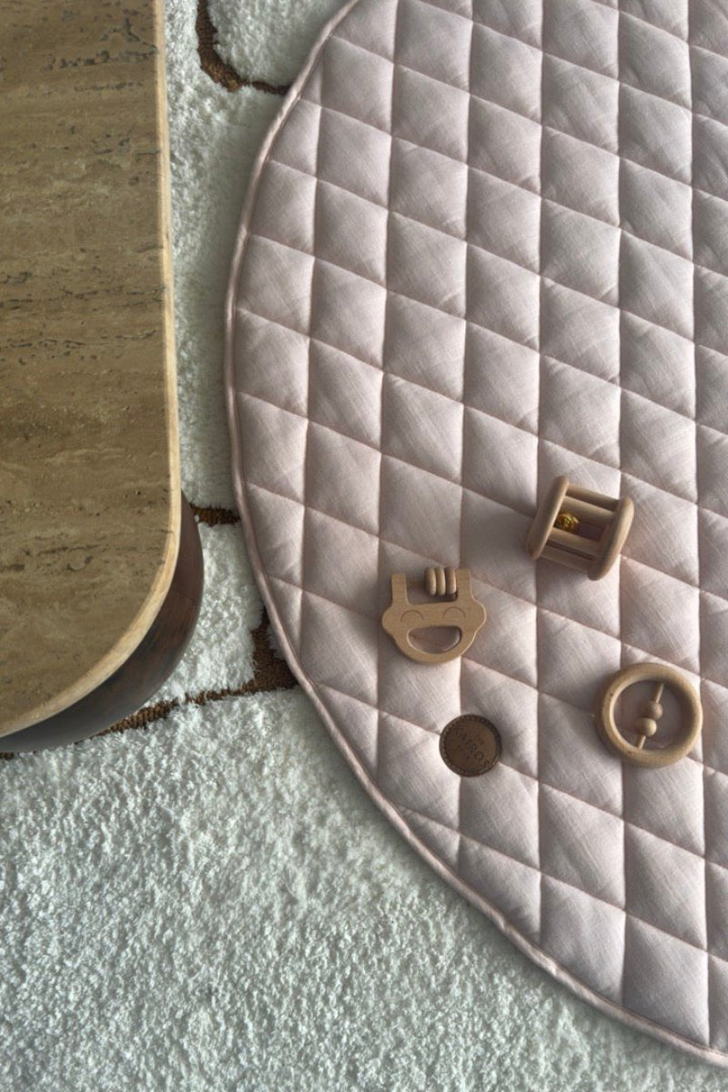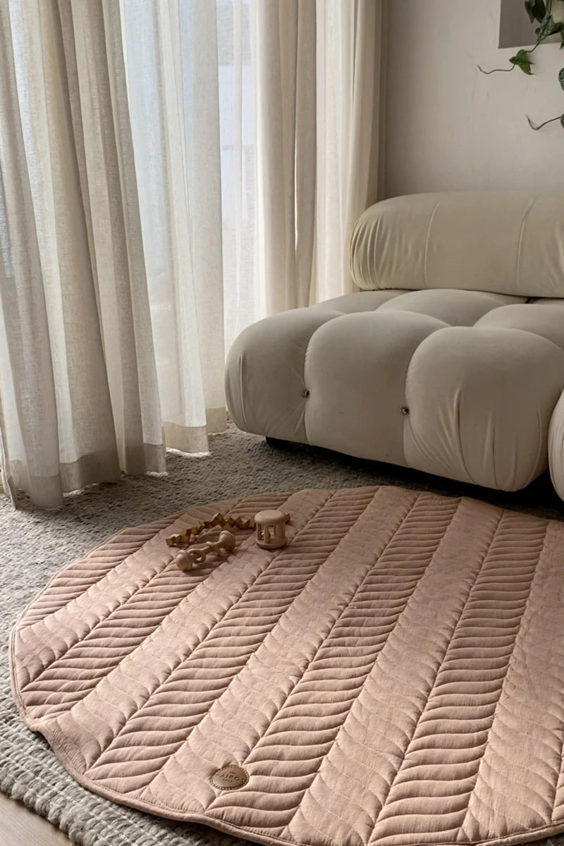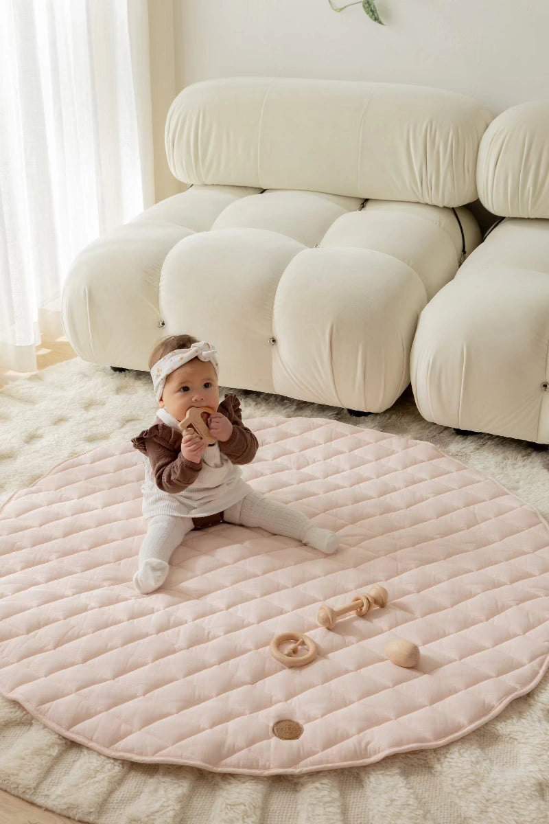 When selecting a baby play mat, consider the size of your nursery and the space you have available. A mat that is too large or too small may not fit well or provide enough room for your baby to play comfortably. Be sure to measure your nursery and choose a mat that fits well in the space. The Kairos Child's linen play mats are 120cm diameter, slightly larger than many others on the market, giving plenty of room to wriggle about!